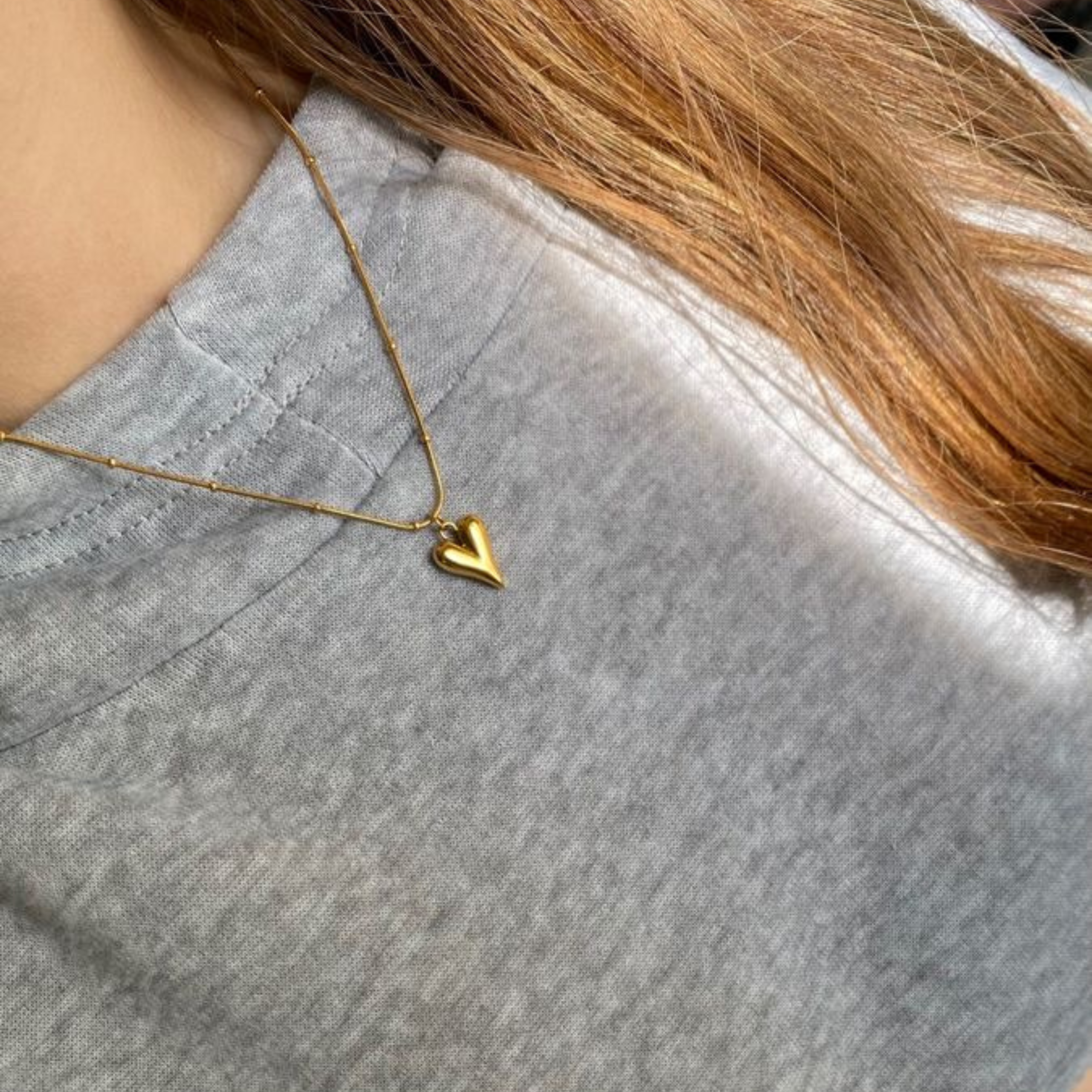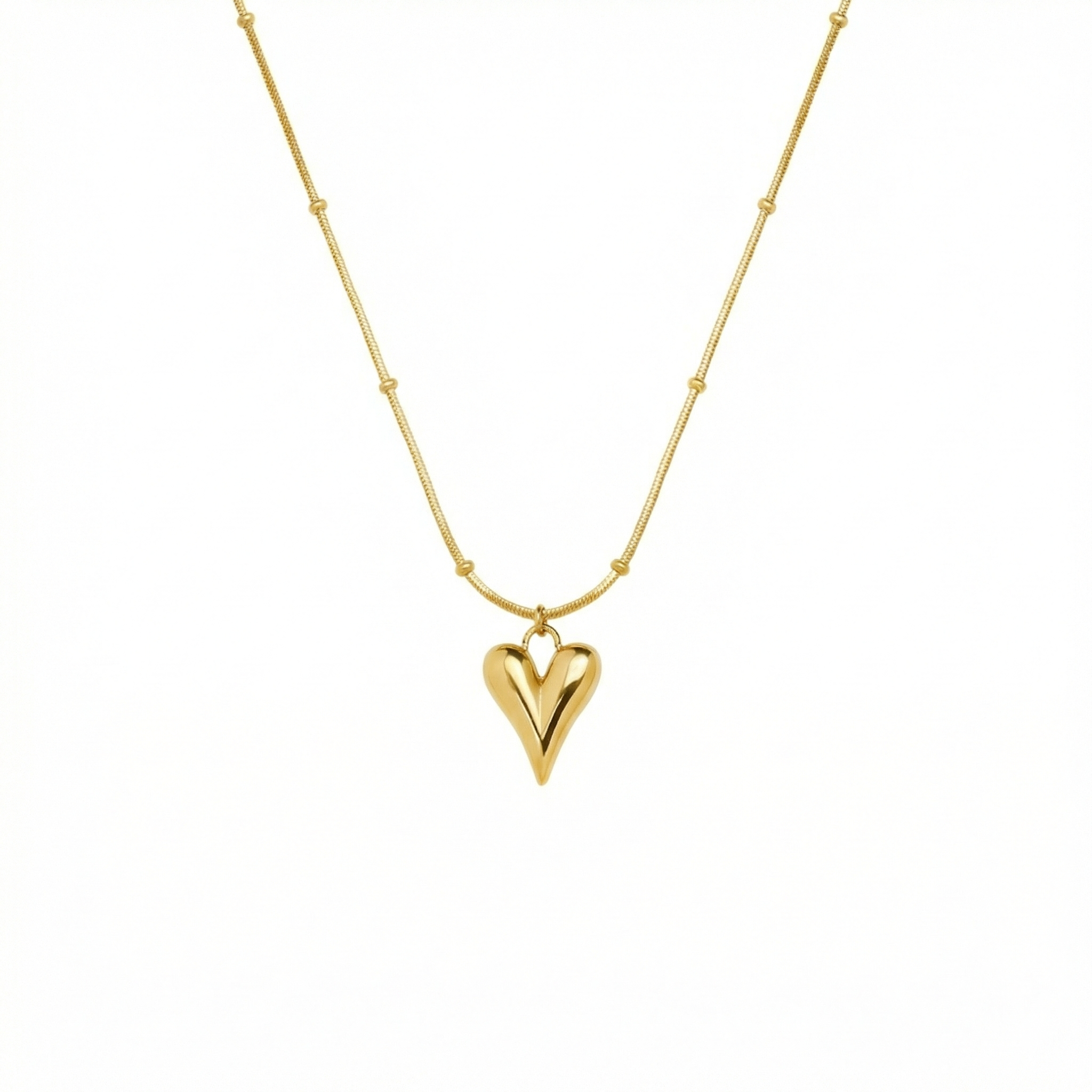 A delicate droplet-heart pendant paired with a beaded chain that adds just the right amount of texture. Simple, pretty, and made to sit beautifully with any stack. Waterproof, anti-tarnish, and hypoallergenic.