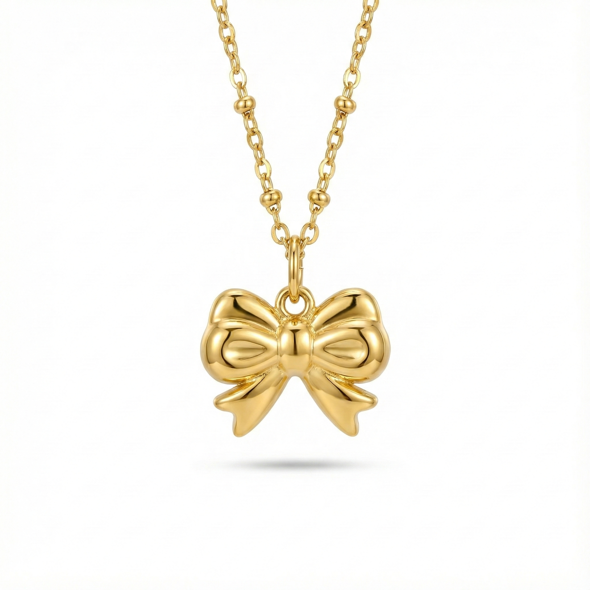 A dainty bow charm that feels like the finishing knot on a gift — sweet, soft, and perfectly detailed. The beaded chain adds a gentle sparkle.