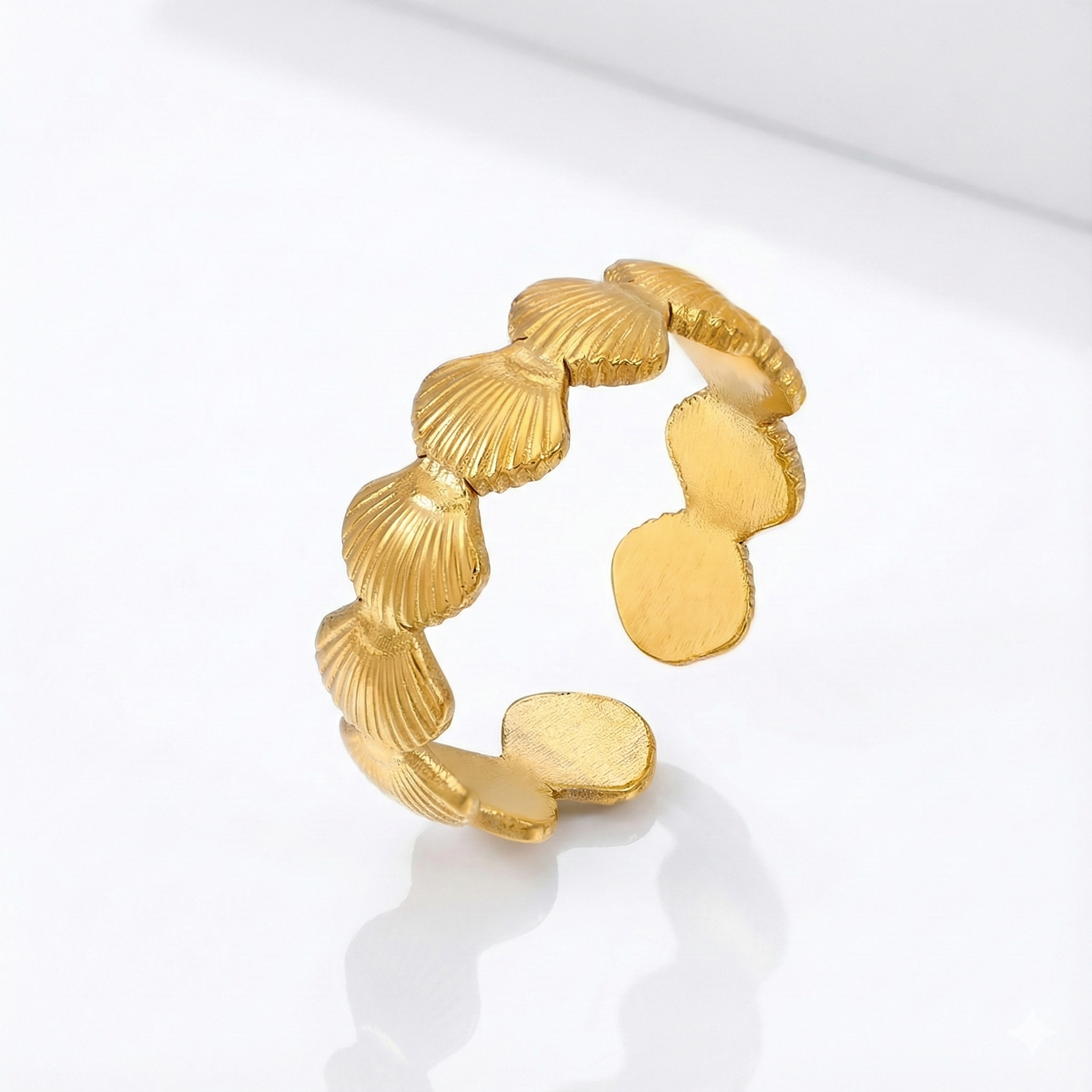 Perfect for stacking or wearing solo all summer long. This shell band ring adds a subtle coastal touch to everyday looks. Style it with slim gold bands or wear it alone for an easy, beach-ready finish.