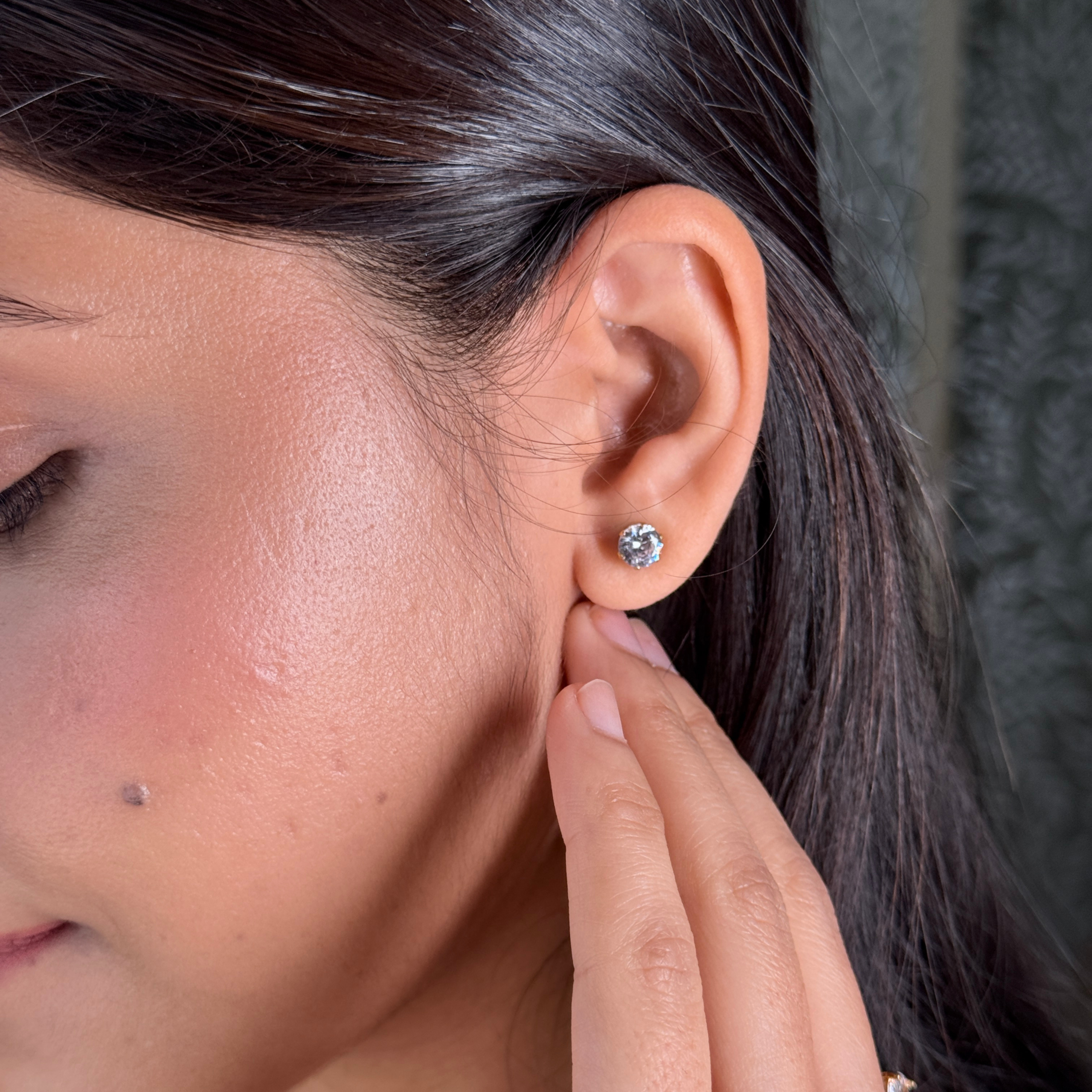 • Matching solitaire stud earrings