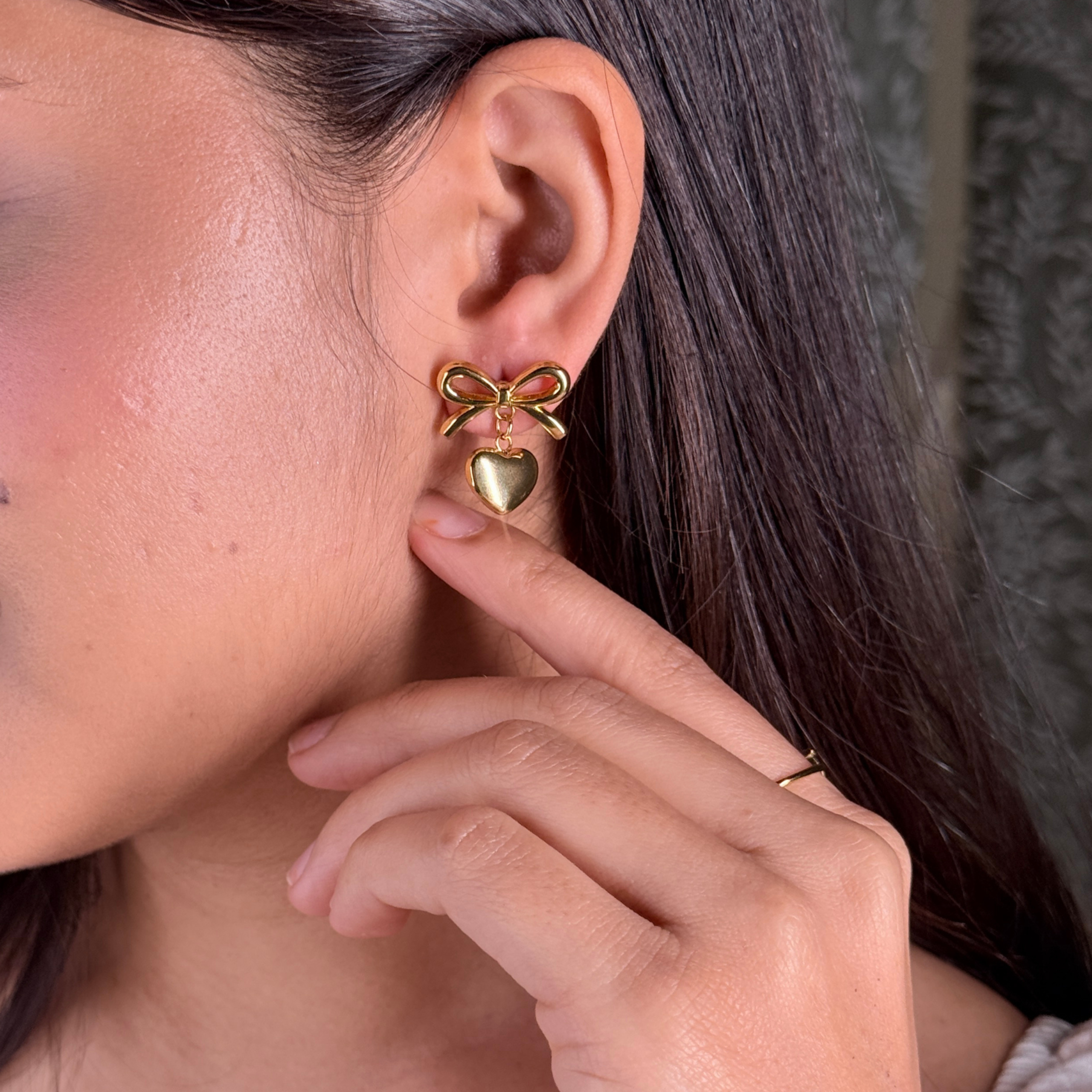 Featuring delicate bow studs with a polished heart drop, these earrings are soft, subtle, and effortlessly charming. Thoughtfully designed for soft-core girlies who love subtle details, gentle shapes, and jewelry that feels personal.