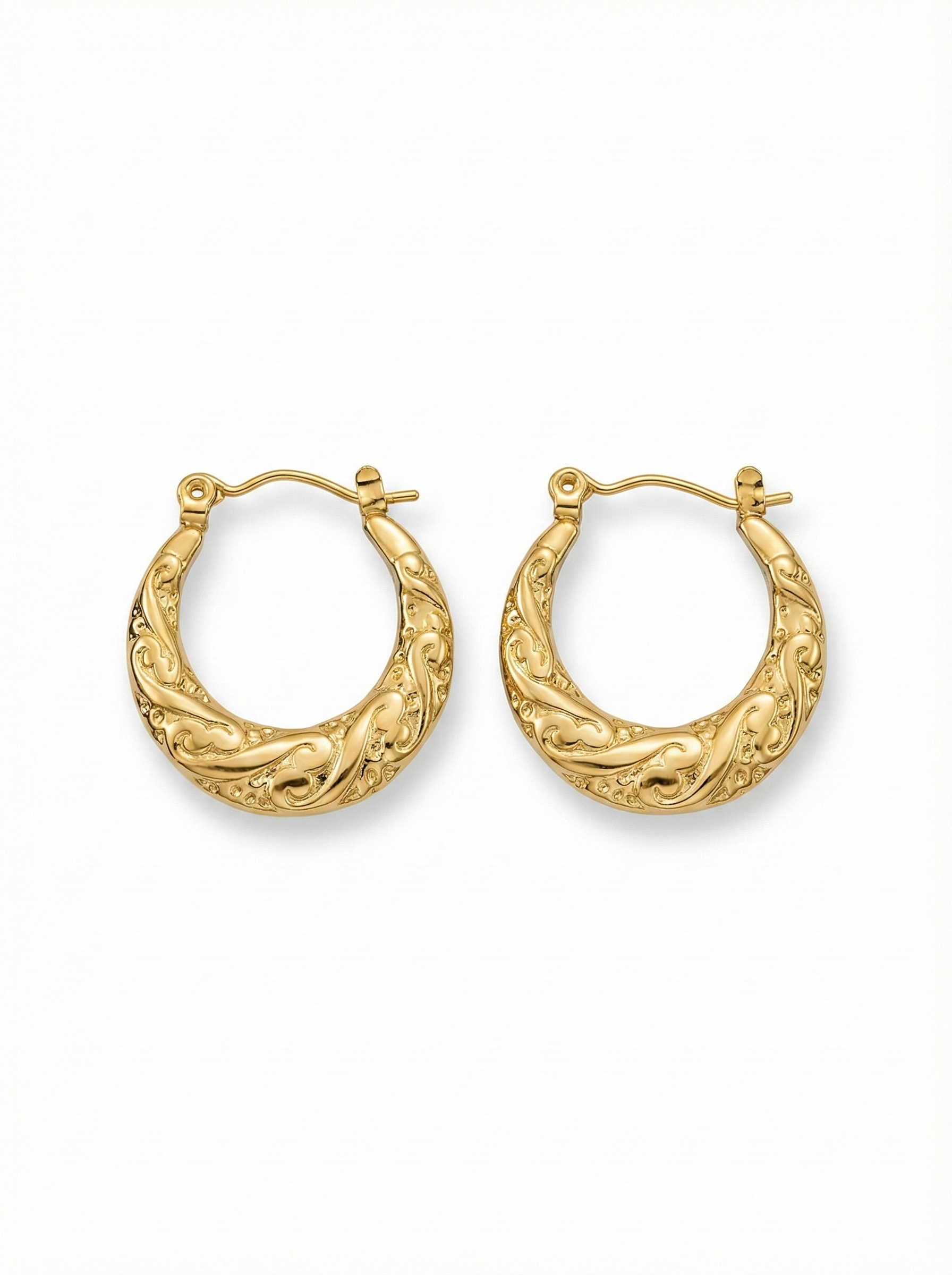 Inspired by rolling tides, these textured gold hoops flow with curved wave detailing that reflects light from every angle. A statement piece that feels effortless, bold, and timeless.